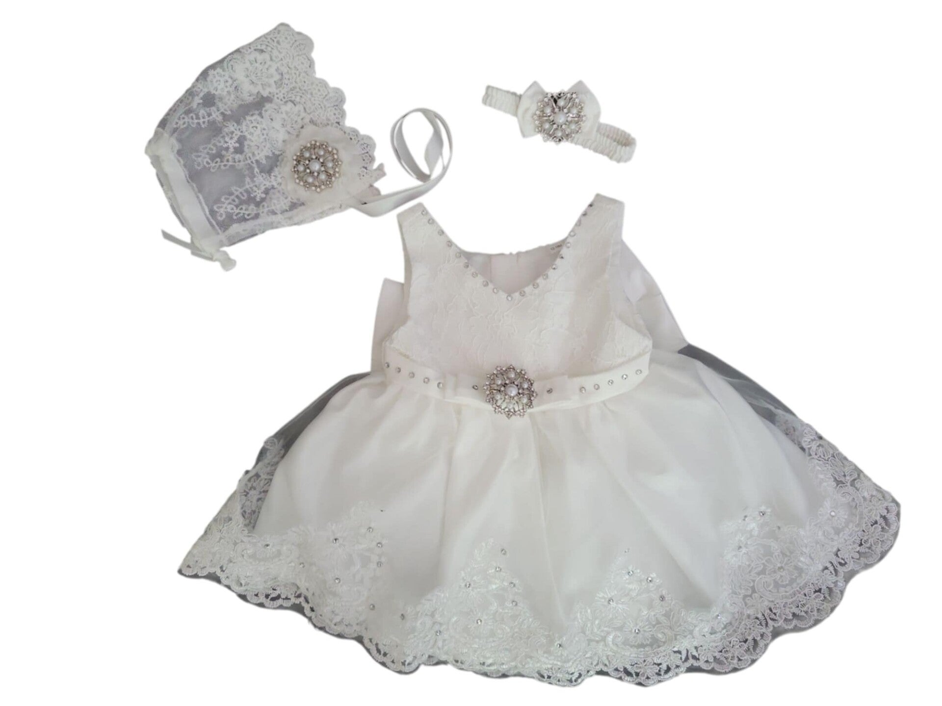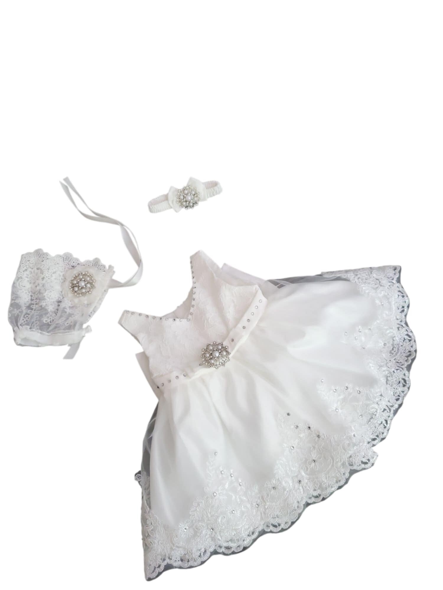 Wunderschönes Outfit für Taufe/Party/Geburtstag (3-teilig) für Baby Mädchen in Farbe weiß