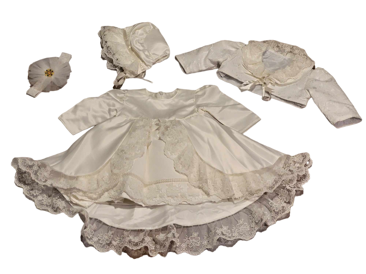 Wunderschönes Outfit für Taufe/Party/Geburtstag (4-teilig) für Baby Mädchen in Farbe ivory-elfenbein