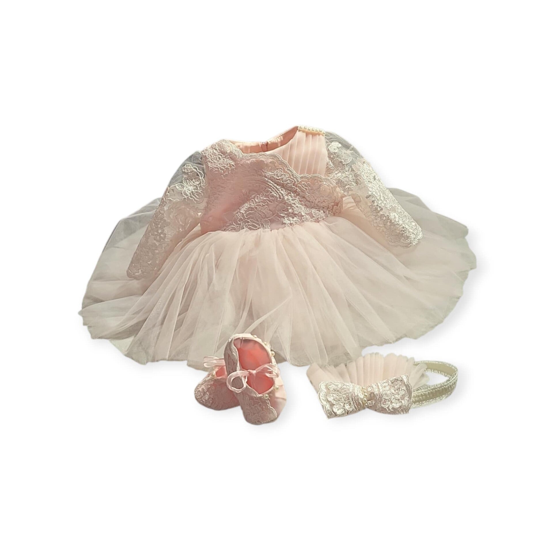 Wunderschönes Outfit für Taufe/Party/Geburtstag (3-teilig) für Baby Mädchen in Farbe rosa