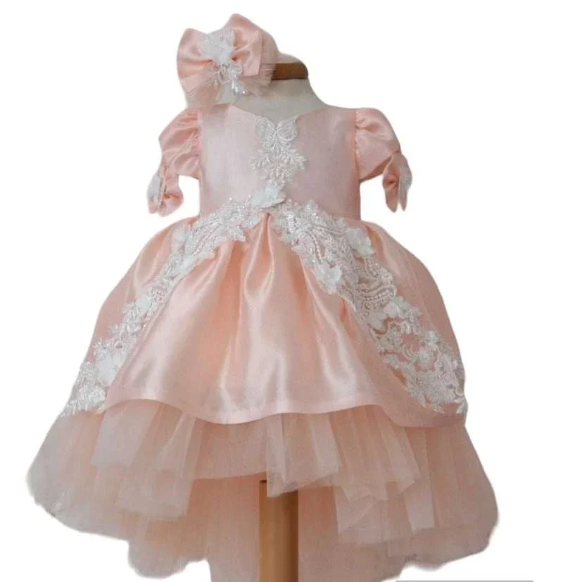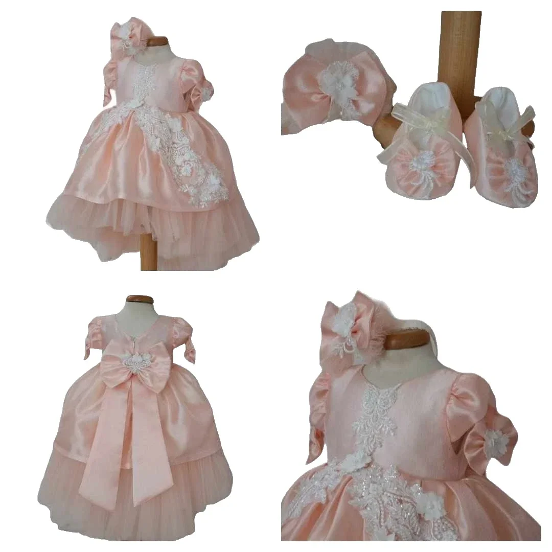 Wunderschönes Outfit für Taufe/Party/Geburtstag (2-teilig) für Baby Mädchen in Farbe somon rosa