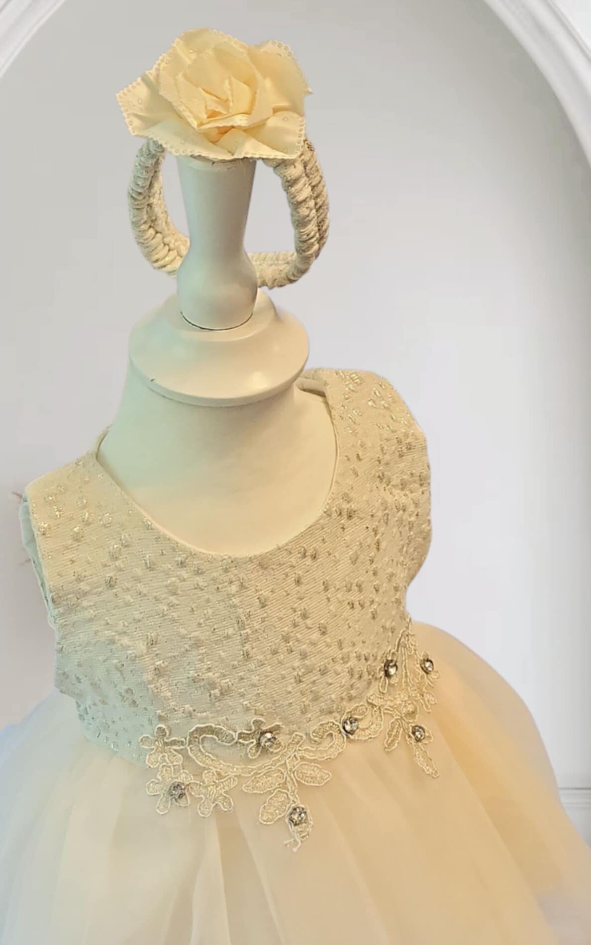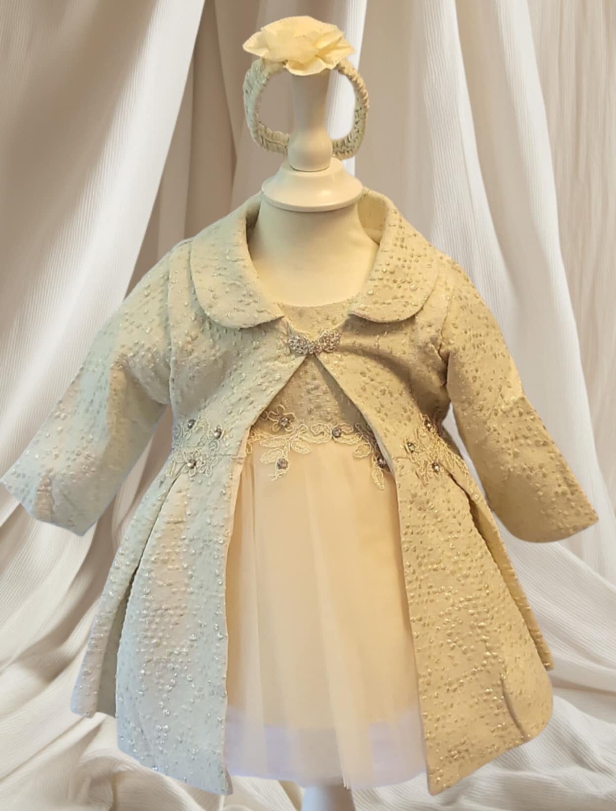 Wunderschönes Outfit für Taufe/Party/Geburtstag (3-teilig) für Baby Mädchen in Farbe champagner