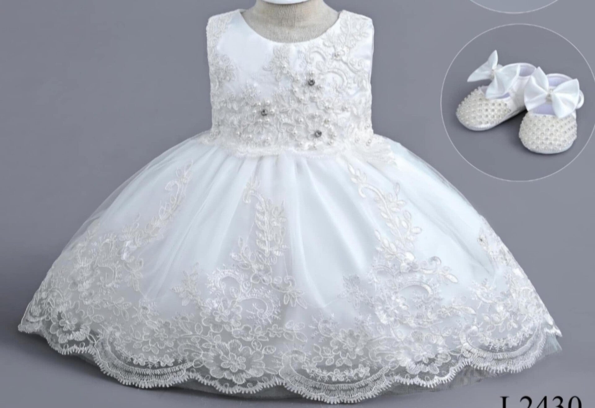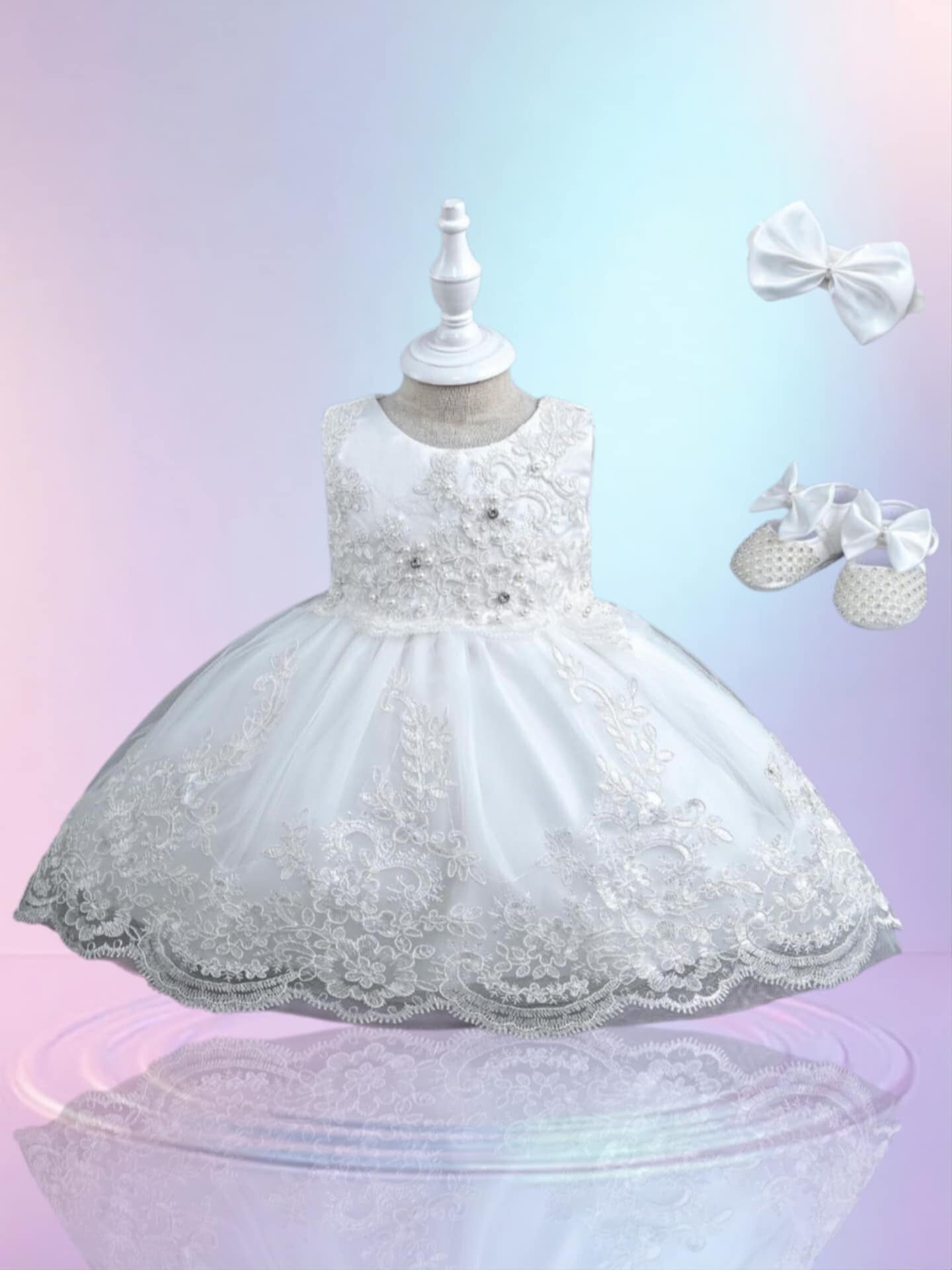 Wunderschönes Outfit für Taufe/Party/Geburtstag (4-teilig) für Baby Mädchen in Farbe weiß