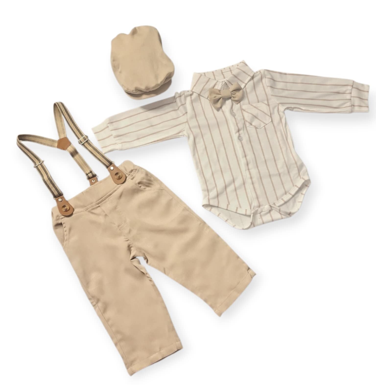 Taufanzug Gr.62 68 74 80 86 Babyanzug Taufe Junge Hemd Hose Fliege Hosenträger Mütze