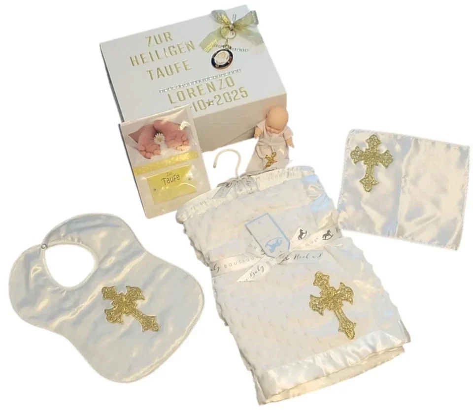 Baby Geschenk Taufe Set Geschenkset Geschenkbox Box Name Taufdatum Taufdecke