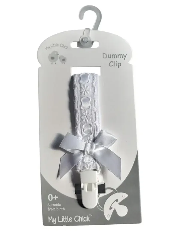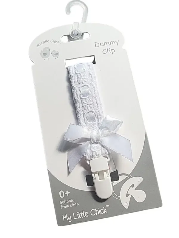 Elegante Schnullerkette - Weiß - Baumwolle mit Spitzenband und Schleife