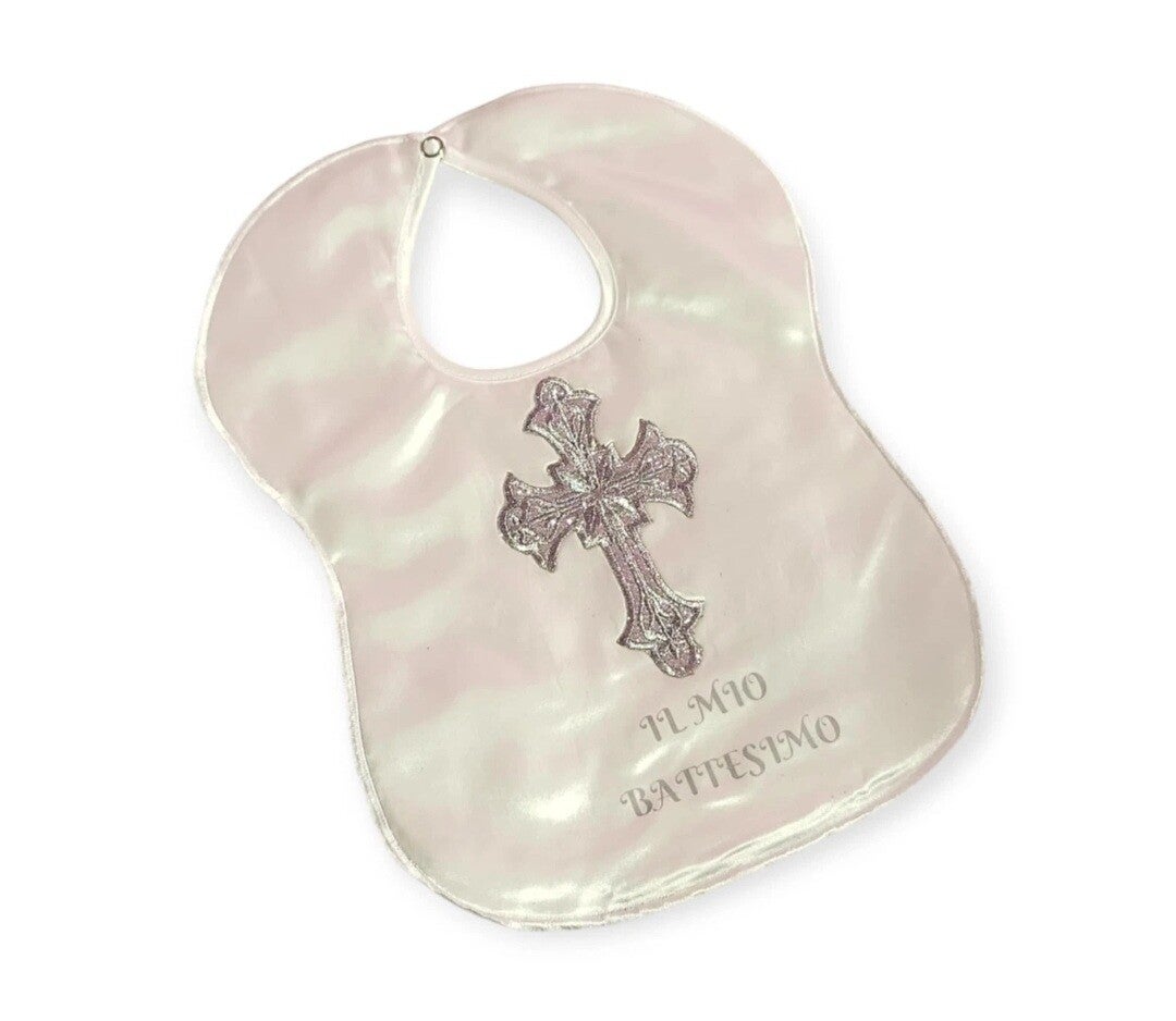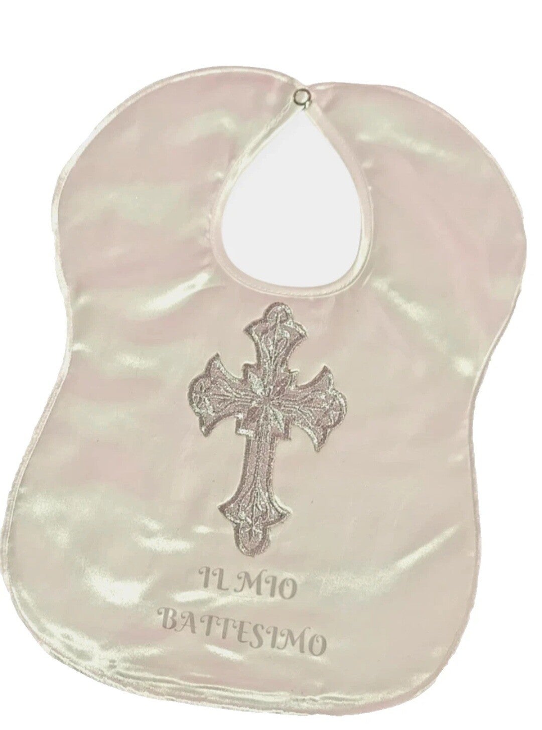 - Tauflätzchen aus Satin mit besticktem Kreuz und bedruckter Schrift-Il mio Battesimo