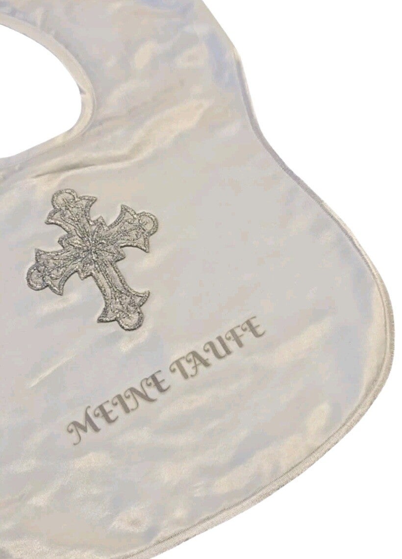 - Tauflätzchen aus Satin mit besticktem Kreuz und bedruckter Schrift- Meine Taufe