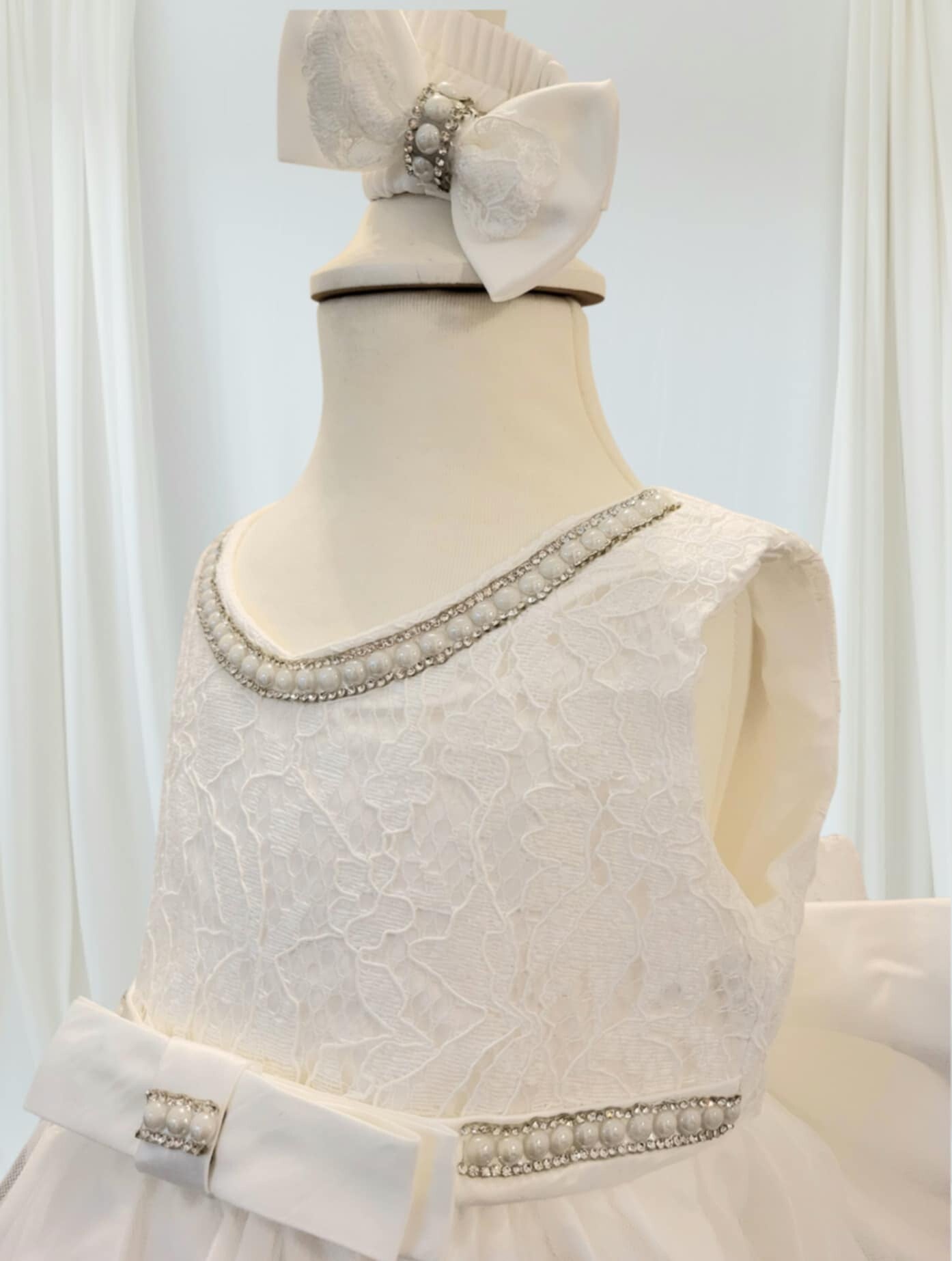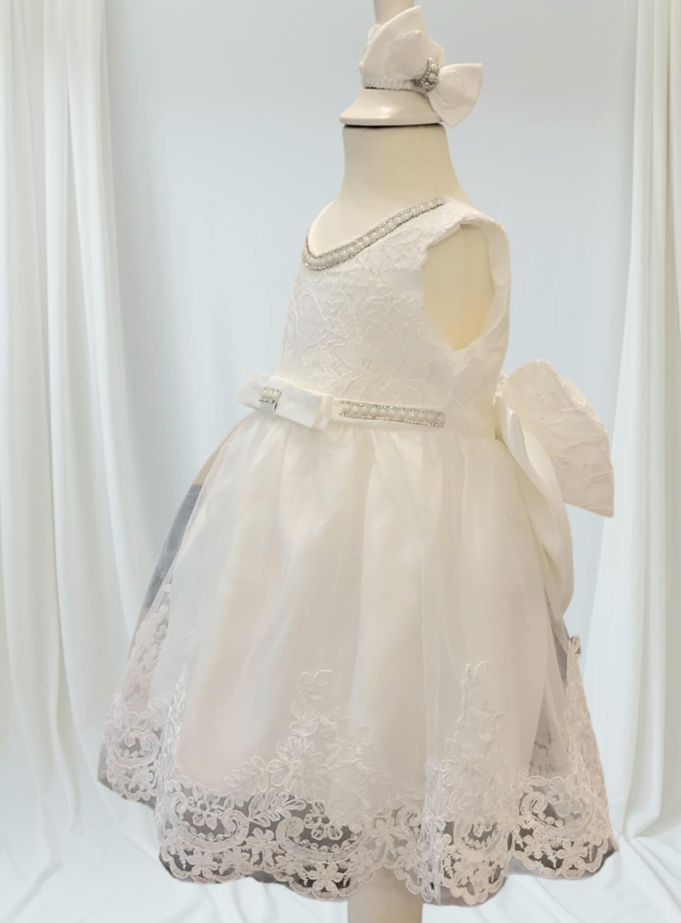 Taufkleid Gr. 80 86 12-18M Babykleid Taufe Geburtstag Party Stirnband Weiß Set