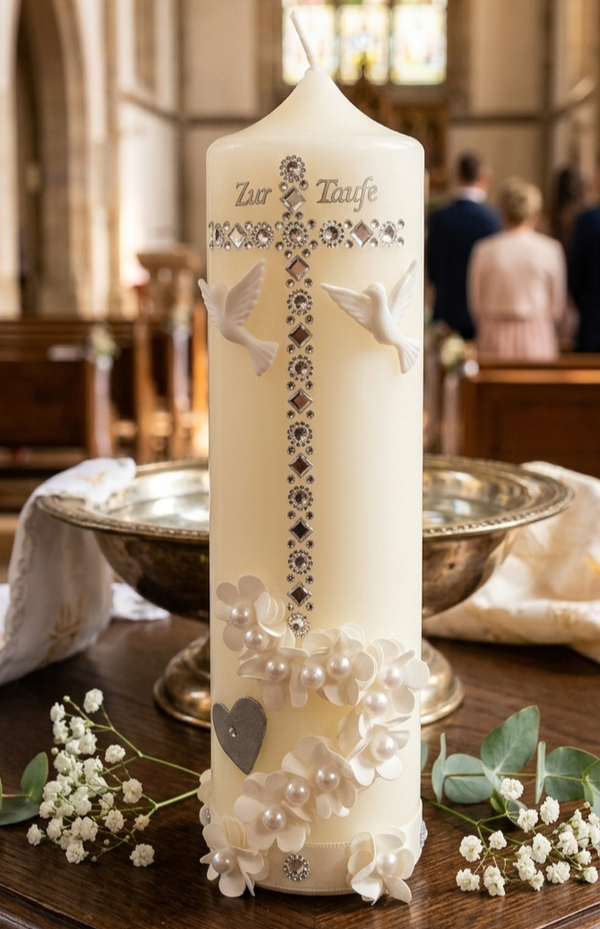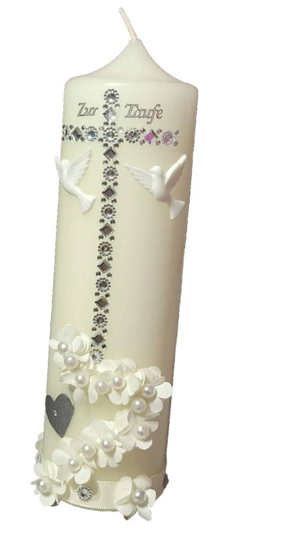 *Hier bitten wir eine wunderschöne Taufkerze an, mit Verzierungen für den besonderen Anlass. Die Beschriftung (Wachsbuchstaben) mit Namen und Datum ist im Preis enthalten. (Bitte nach dem Kauf mitteilen)